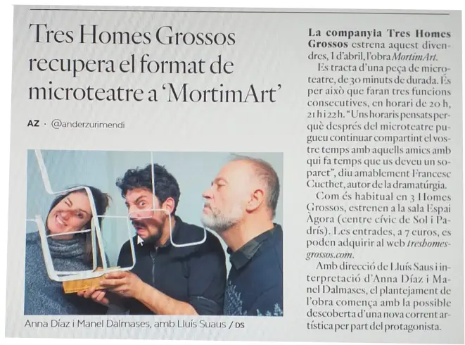 En el pot petit hi ha la bona confitura diuen. Un text original com es marca de la casa als 3Homes Grossos que defuig dels típics textos de parelles i matrimonis que tant abunden i avorreixen al món del microteatre, per tocar temes molt més madurs i rics. Una direcció cuidada. Una escenografia coherent. I dos actors de molta qualitat, amb moments còmics"